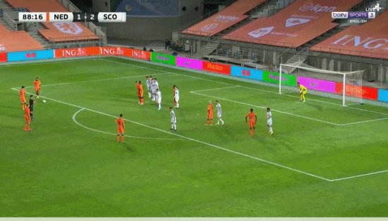 89'荷兰获得前场任意球,孟菲斯·德佩主罚直接破门,帮助荷兰队扳平比分!